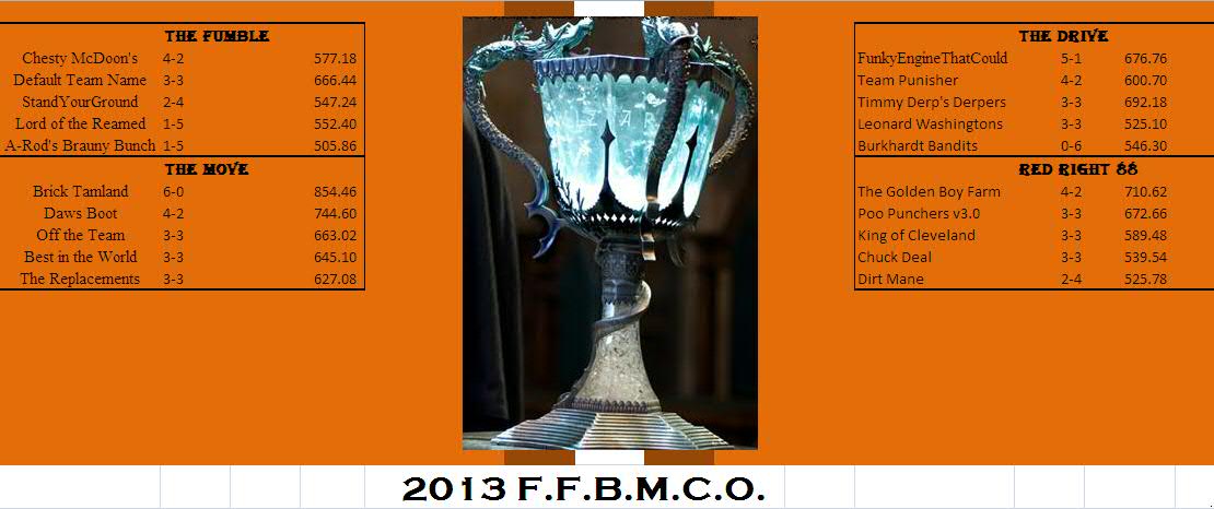 Wag of the Finger #1: Default Team Name. I hope Kyle’s manager gaffe only occurred because he’s locked in a garage creating awesome Iron Man Halloween costumes. But to play a kicker who is on a bye and lose by 0.12 points is just awful and not up to FFBMCO standards.